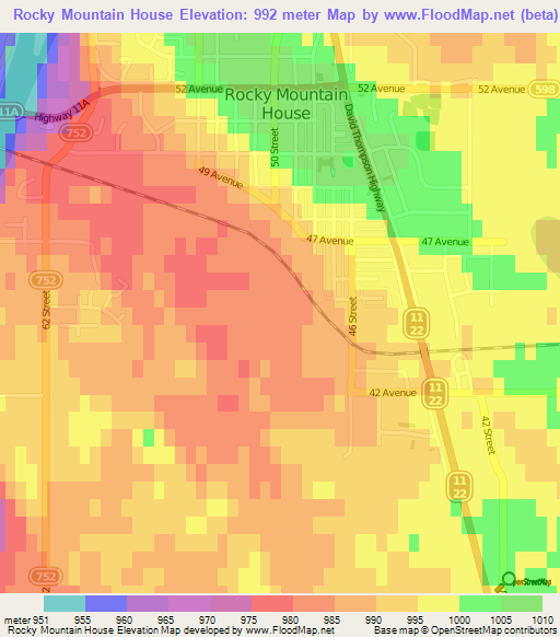 Elevation Of Rocky Mountain House Canada Elevation Map Topography Contour